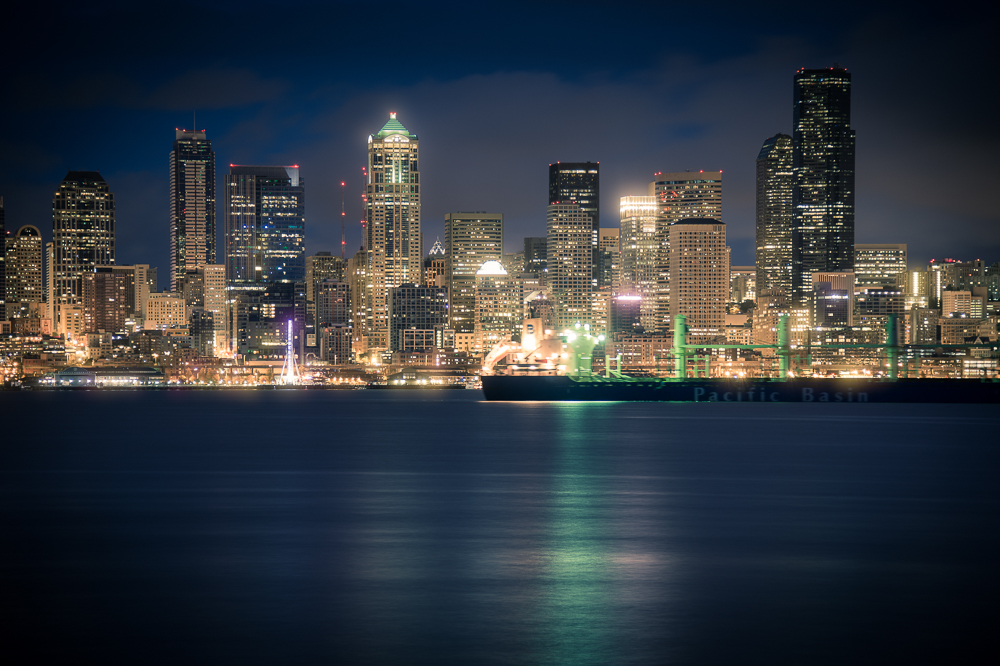 As the exposure was still quite long, the water came out as pretty flat and still, but I still got the city lights across it so I thought it looked pretty cool. I’m not sure I like the horizon in this picture being in the center of the image, but I liked the buildings and the lights on Elliott Bay, so I left it there. The Great Wheel looks a little strange as from this angle is it just looks like a white pole, but there’s not much I can do about that.
