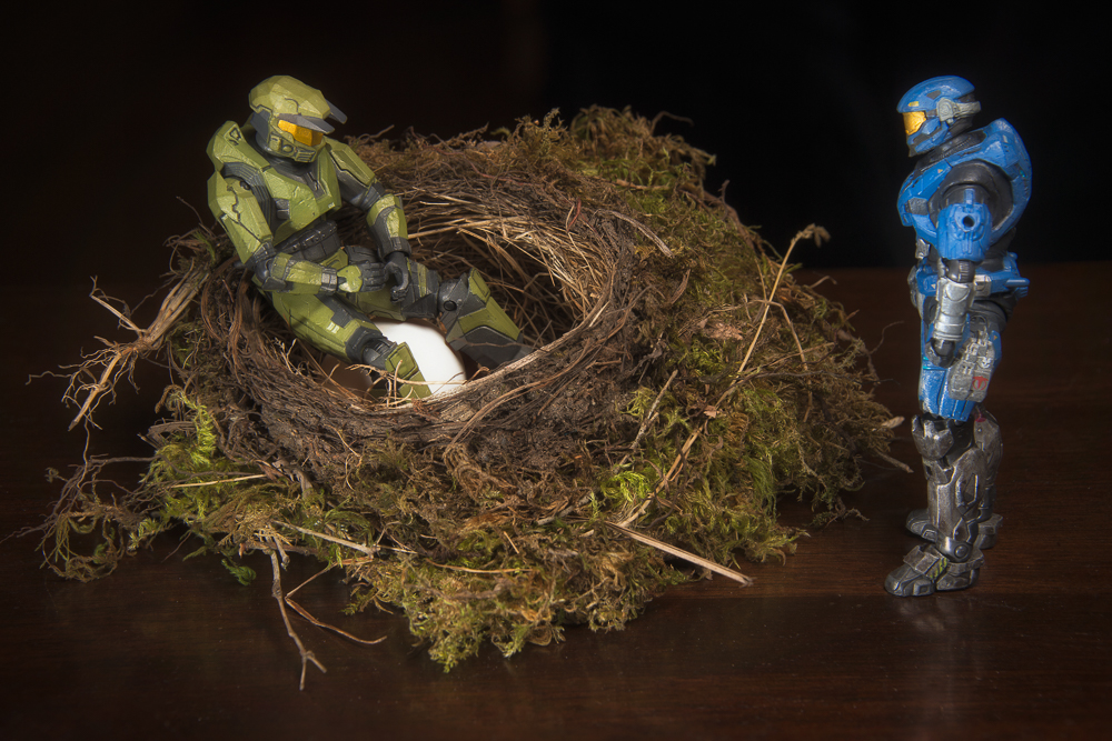 Sometimes I have no idea what these guys are doing, tonight it appears that Master Chief was trying to hatch a chicken egg by sitting on it in a birds nest he found! Carter was shocked by this too!
