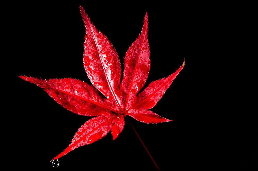 Now 18 year old Tony would have been laughing his head off, I can hear my younger self now in my head, I was so embarrassing. I probably would have made some derogatory comment to the guy about how stupid he was or something. But these day’s being much older (50 next year), I can appreciate the beauty in a simple leaf and I started thinking. At home we have the very cute little Japanese Maple tree (Lisa loves this tree) and this week the leaves have turned from their normal deep purple to this amazing red color (clearly they are soon going to fall). And all of a sudden all I can think of is how much I want to shoot a single leaf when I get home.