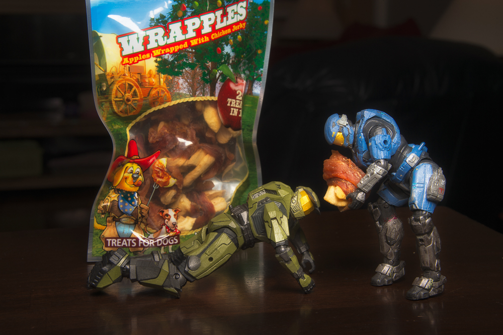 Master Chief saw some dog treats and asked to try one, Carter said he had to play dog first.