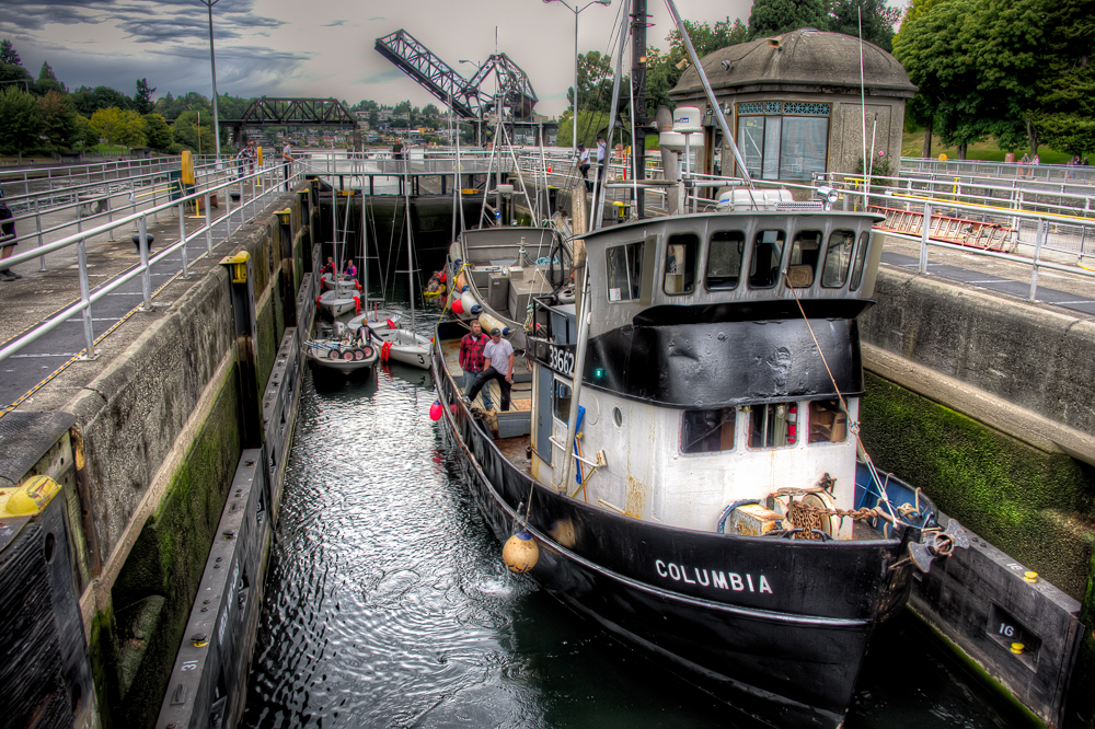 The other day we visited Ballard Locks in Seattle and got some great shots of the boats moving from Lake Union through to Elliott Bay. They have two locks in Ballard, one really really big (it’s like two football pictures) and one that’s pretty small. The big one takes a LONG time to fill up with boats, then it takes a long time for the water to rise. So if you go into the big lock you have better have a lot of time.