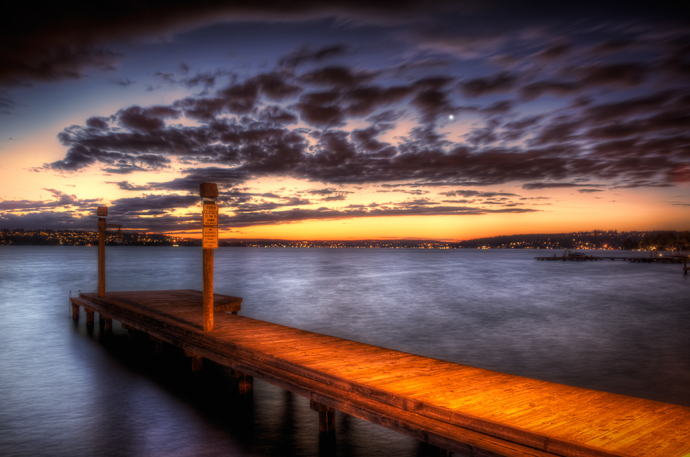 The trouble with night time shots of piers, is that once you take one, you kind of want to take them all! This time I visited Lake Washington on the Kirkland side and found this small pier. The sun was setting on the other side of the lake and behind me was this very bright street light (that’s why the pier is so well lit up).
