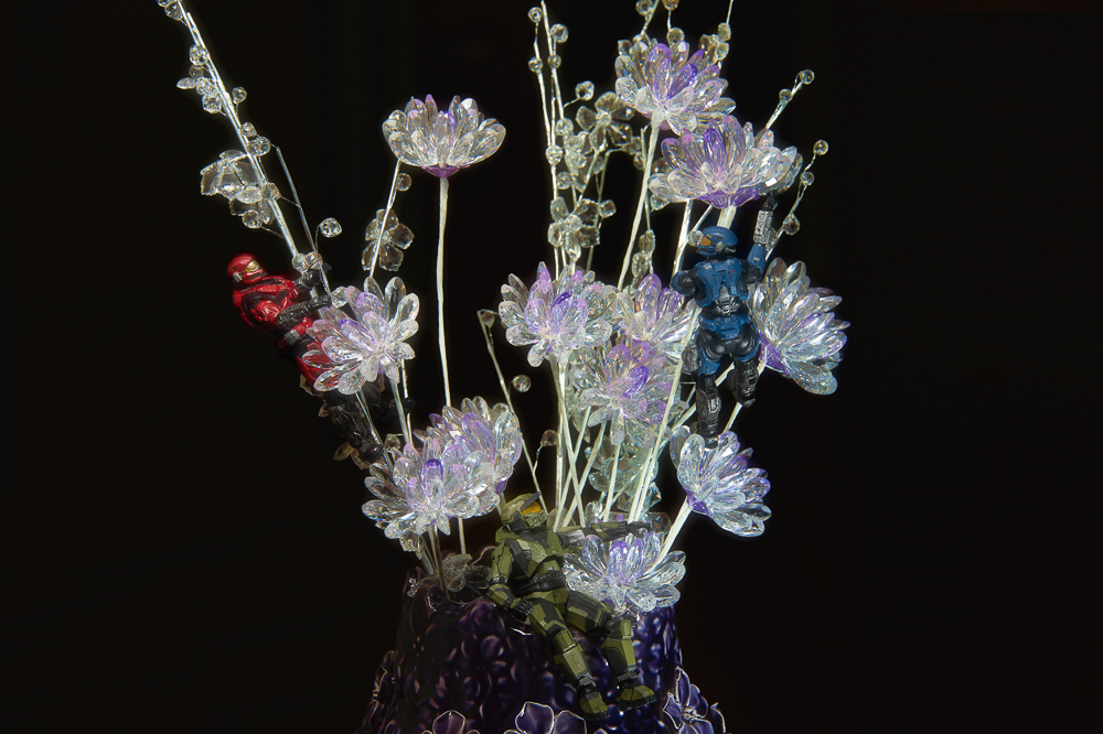 The guys wanted to climb something today, so I pointed them to this – well it’s kind of a glass fake flower display thingy – and up they went!
