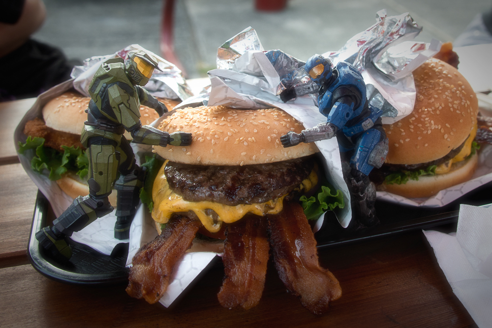After visiting Ballard Locks we went to Red Mill Burgers across the road and Carter and Master Chief fell in love – with a Double Bacon Cheese Berger.