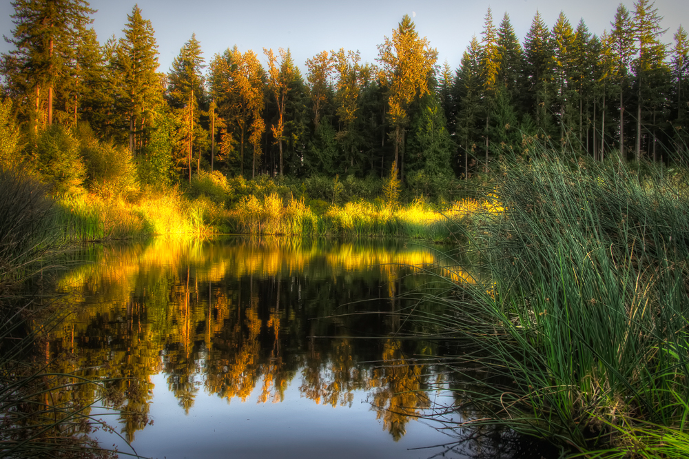 The image I would have liked to capture really needed a wider angle lens, but mine’s in the shop so until that comes back I had to stand back a bit further to get a shot I liked. The reflection of the trees in the water made this picture and the greens and yellows looked great.