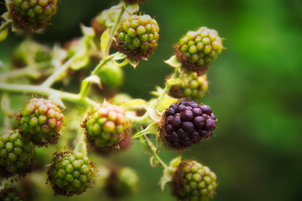 I have a really nice lens that I take out with me that I used here (for the technical amongst you it’s a Nikon 70-200 f/2.8 VR II) and it can capture images with really nice bokeh. Bokeh is the creamy out of focus background you see in the image below and usually appears as circular highlights. What the lens really does is take a picture with a very narrow or shallow depth of field, this means only a small part of the subject I’m shooting is in focus and everything in front and behind is out of focus. It’s nice for taking pictures that concentrate on the subject without having distracting backgrounds – very big in portrait photography. As I take a lot of landscape pictures I don’t do this very often as for landscape you want everything in focus. Here it’s really great at capturing the blackberries.