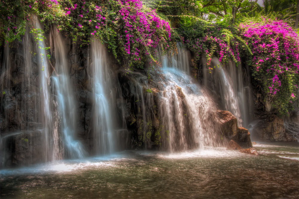 So what you have to do is take two images. One with a long exposure for the water, and one with a short exposure for the foliage and flowers. Then you blend the two pictures together to create the “perfect” waterfall.