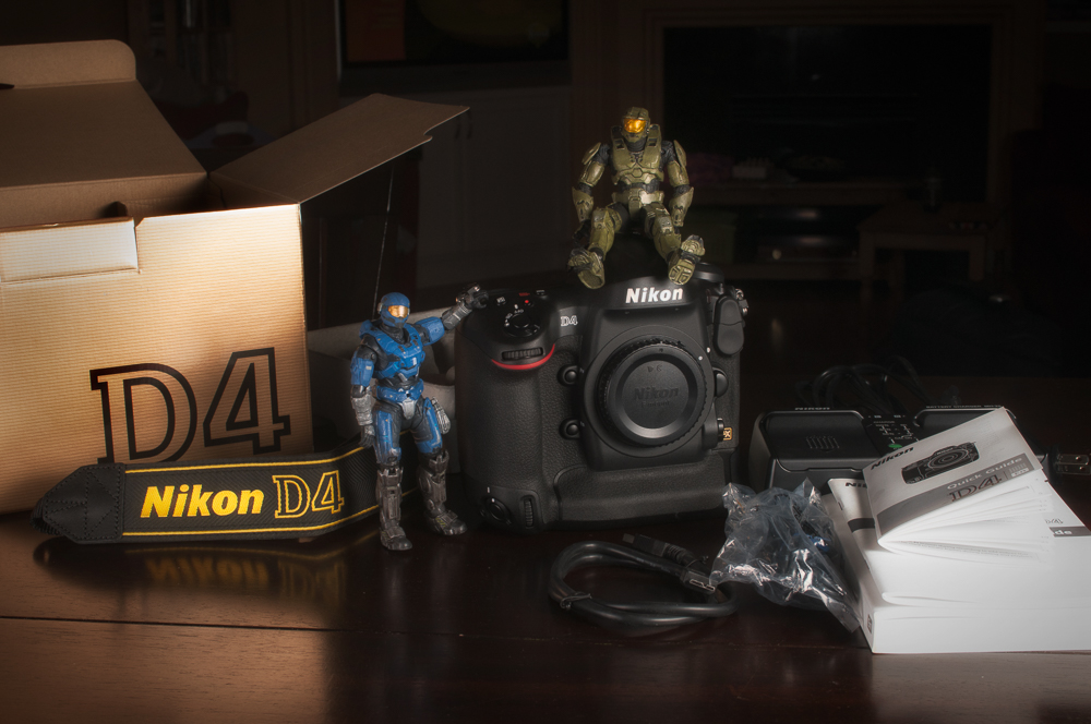 At the beginning of the year I said I wanted to try lots of different types of photography. One form I haven’t tried yet is product shots. As my new Nikon D4 arrived today, I thought I’d do a nice shot of my new camera, using my old camera – for the last time.