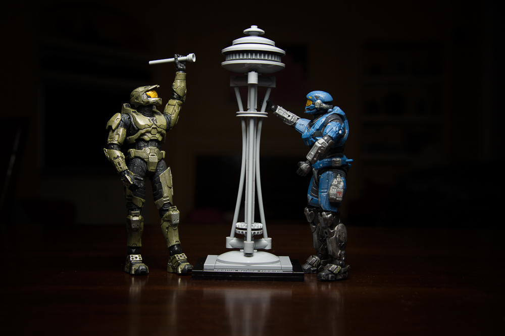 Carter and Master Chief decided to make a model of the Space Needle today. Here you can see Master Chief adding the finishing touches.