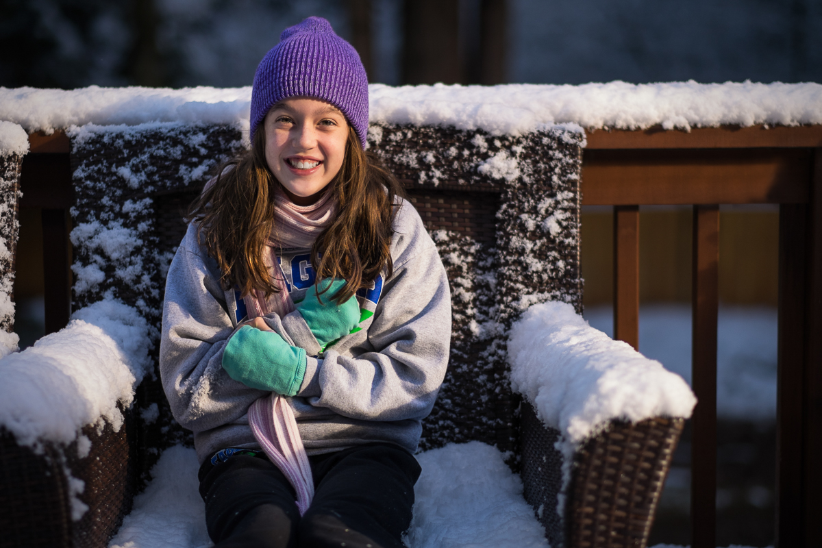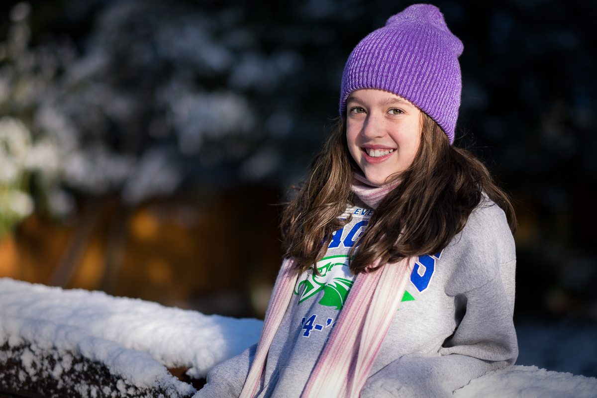 But this year things were different – don’t know why, but Abi was great, she got dressed when I asked her and ran out into the garden with a big smile on her face. The night before we had some snow come down so it gave us the perfect backdrop for some nice portraits. I shot Abi Saturday morning and everything went great, but James was still in bed – in fact he stayed in bed until 3pm and by the time he had got up and had breakfast the sun was no longer visible and everything was in shade.