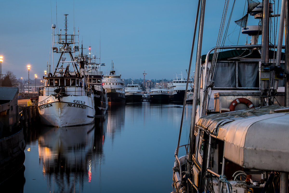 So off we went to Seattle, I even had a plan. At first I thought we’d try Discovery Park and take some shots there, but there is a hell of a walk from the parking lot down to the beach and we just didn’t fancy that. But on the way there we passed this large marina with a load of big fishing boats. They looked amazing as we drove past so we turned round and went back.