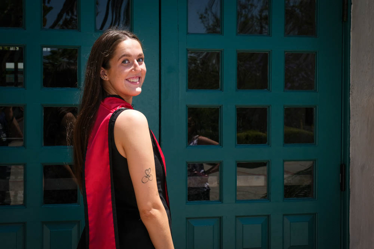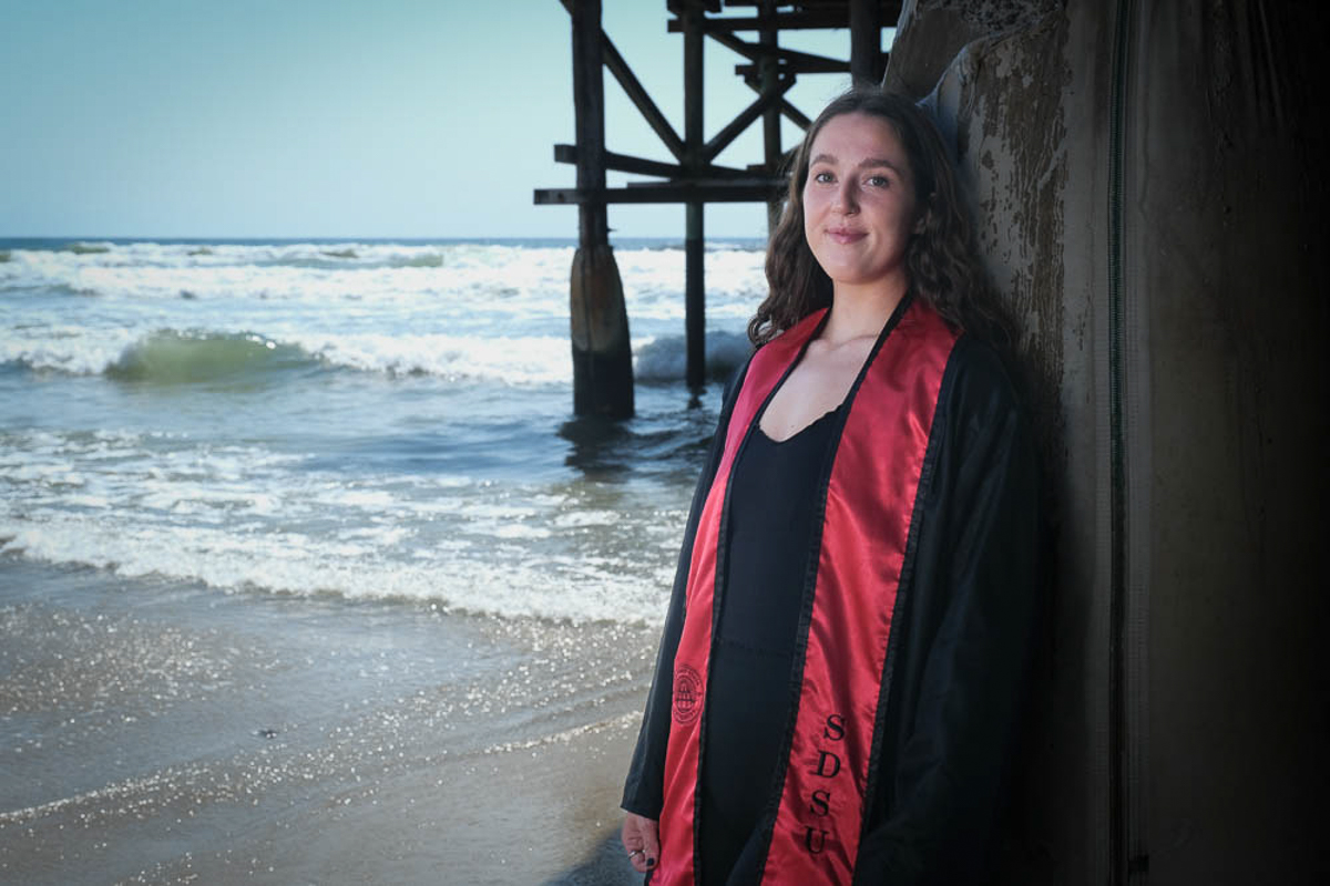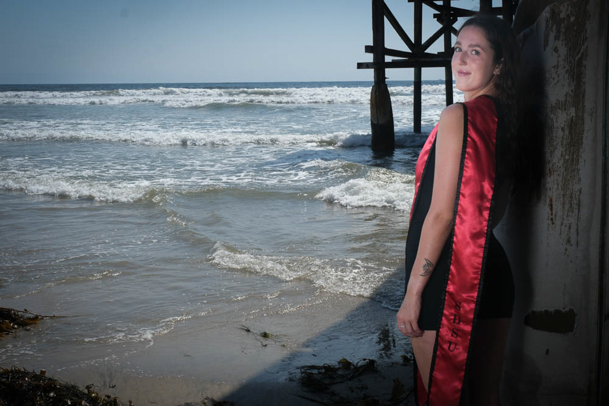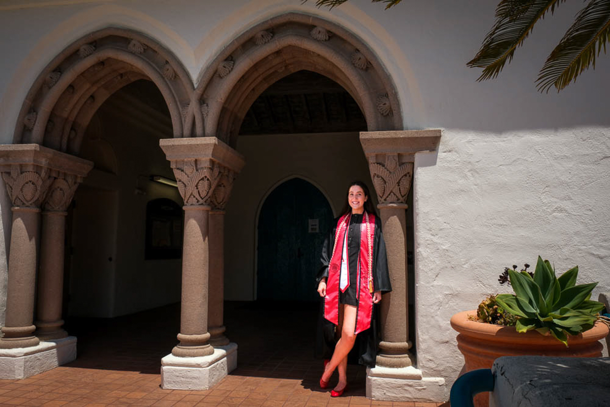 I took the camera and captured some pictures of her around the university and down on the beach. SDSU is a really pretty university with lots of white stucco buildings with Spanish tile roofs, makes a great backdrop for graduation pictures.