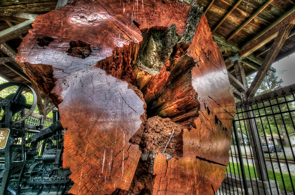 So what’s a huge tree trunk doing near the main street? Well fortunately there was a very large plaque next to the tree so I can answer that. It appears that back in the day a major source of income for the community was lumber. Once the railway was built the Snoqualmie Falls Lumber Company did a roaring trade in huge Douglas-Firs, Sitka Spruce and Western Red Cedars.