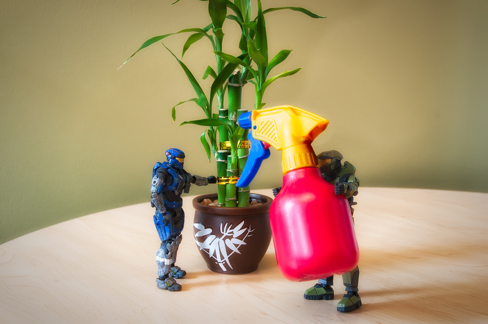 Remember that little bamboo plant I took to work? Well it’s doing really well, largely due to the care and attention being given to it from Carter and Master Chief.