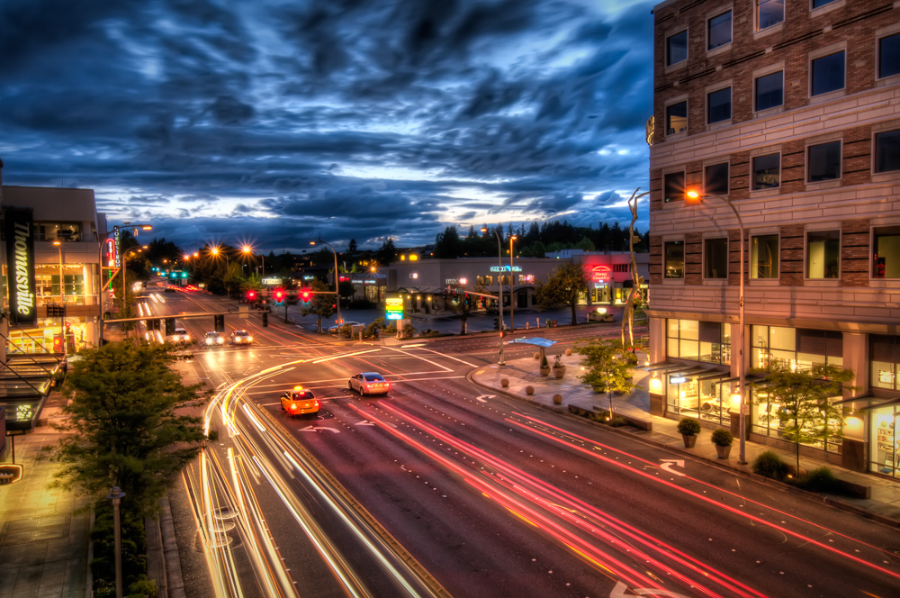 Anyway I’m drifting again. While we were out we were talking to our friends (Cameron and Kathryn) about the picture a day postings and how we spend all our time looking for something interesting to shoot. And here we were standing on this foot bridge overlooking Bellevue town center with a great view. Somebody (it wasn’t me) said “what about taking a picture of that” pointing to the crossroads. So tonight I went back with my camera and grabbed some shots.