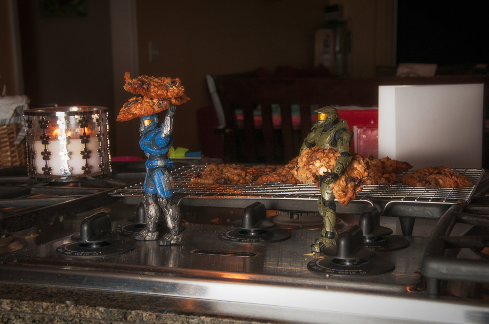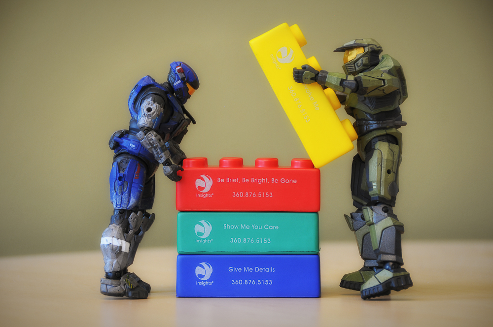 Looking around my office the Halo dudes found some Insights Lego blocks and started to play.