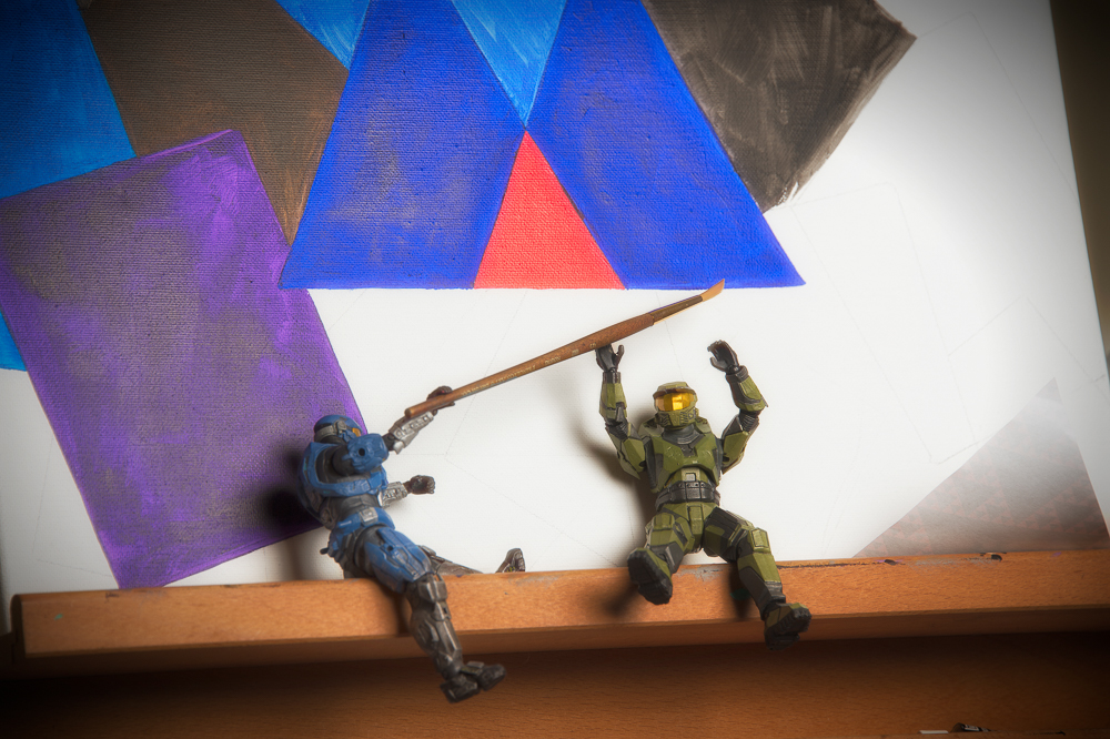 I’m sure you have often wondered what happens if Carter and Master Chief get in front of a canvas with paints. Well they fight over the brush as you can see in this image!
