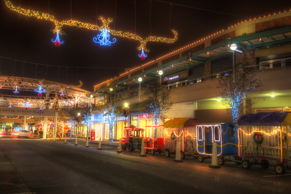 So being a good boy I did exactly what I was told. James wanted a “Baconator” from Wendy’s so I went and got that for him and while I was in Redmond I grabbed this shot of the high street which is currently covered in lights.
