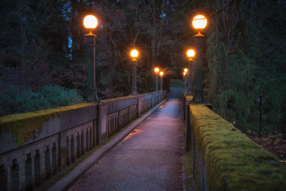 Tonight’s image was taken in the Seattle Washington Arboretum Park. This is a really pretty park right by Lake Washington and is full of walking paths that at this time of year are full of runners (it’s too cold I guess to go for a walk). I found this park by mistake one day. I was driving down Lake Washington Boulevard looking for somewhere to photograph and drove under this great bridge. It was made of stone and had these lights on top. I had Abi with me at the time and told her I’d go back one day and shoot the bridge.