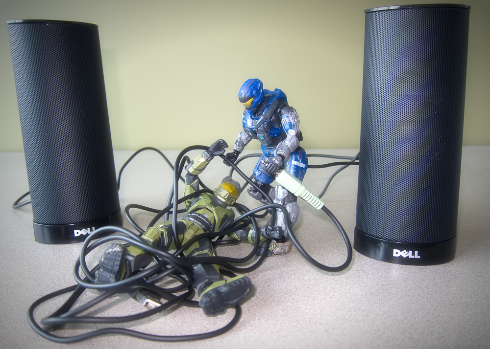 Now I know that when people say “he was wired” they sometimes mean the person was tense with excitement and enthusiasm as from a rush of adrenaline, but when Master Chief got wired it was different, he literally got caught up in a load of wires! Bit embarrassing but it happens to us all (when you’re 3″ tall anyway).