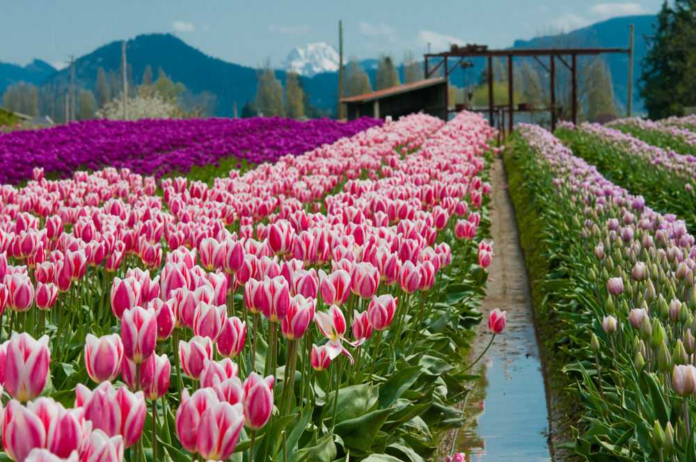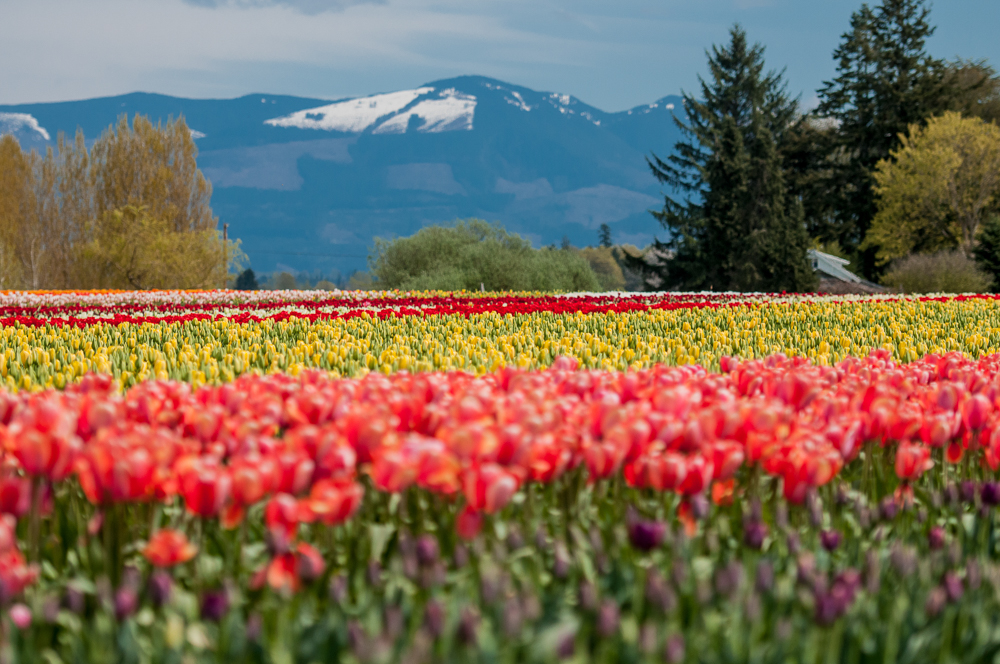 Today’s image is again from Mount Vernon and shows rows of tulips. This image is a favorite of Lisa’s, she likes the one tulip sticking out into the row (that’s different from all the others). I like the lines of the rows that lead you to the building structure in the top right of the image (unsurprisingly this is called “leading lines” and guides the eyes where to look). Also if you look at the top center, you can see Mount Baker popping above the hills.