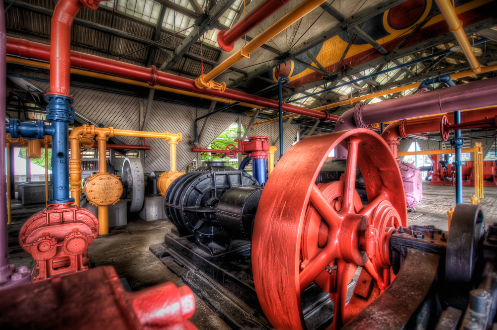 Gasworks Park is a 20 acre public park on the north shore of Lake Union overlooking downtown Seattle. It’s the former site of the Seattle Gas Light company’s “Gasification Plant” (and no I didn’t make that up). The park still has a number of old machines left from when the plant shut down. Some of it is fenced off, but there’s a play barn and picnic shelter that has loads of old machines that have been painted bright colors.