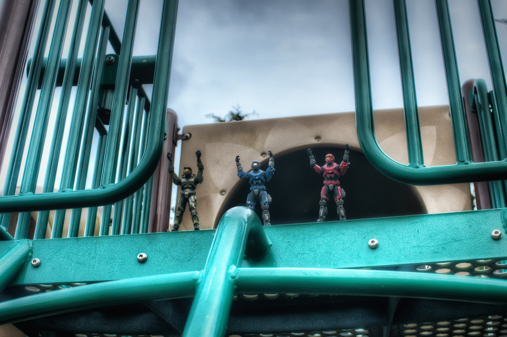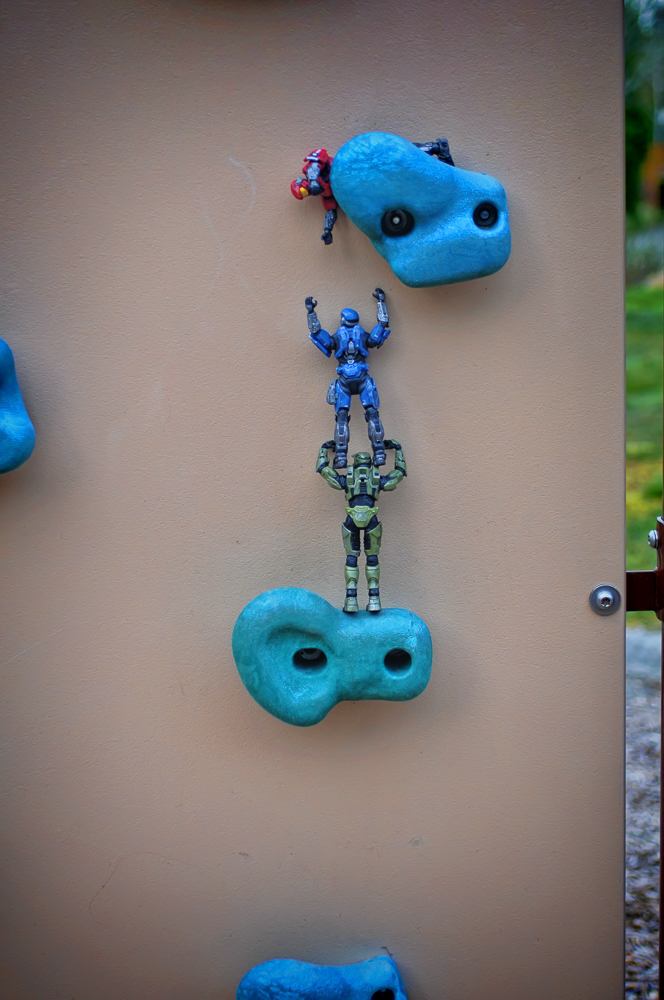 The Halo guys went to play in the neighborhood park today and found a climbing wall. Not being guys who turn down a challenge, they went for it.