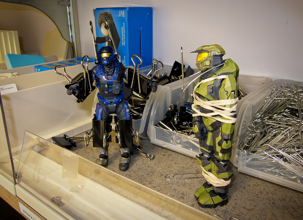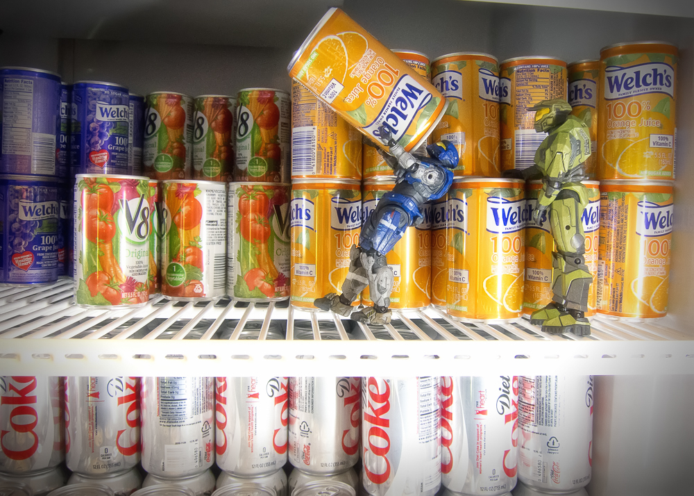 I lost the Halo guys at work today, so I went looking for them and I found them in the Drinks Fridge pounding cans!