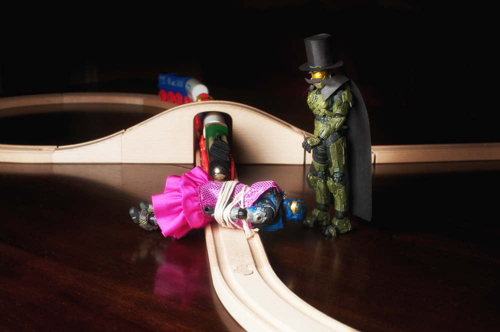 I think Carter and Master Chief watched an old Buster Keaton film or something today, because this evening I found them playing with a train set.