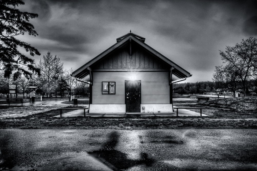 I was driving home this evening wondering wheat I should photograph, when I looked out over Marymoor Park from the 520 freeway and saw this small hut. When I saw it I immediately thought black and white, as it was raining quite heavily and everything was gray and drab.