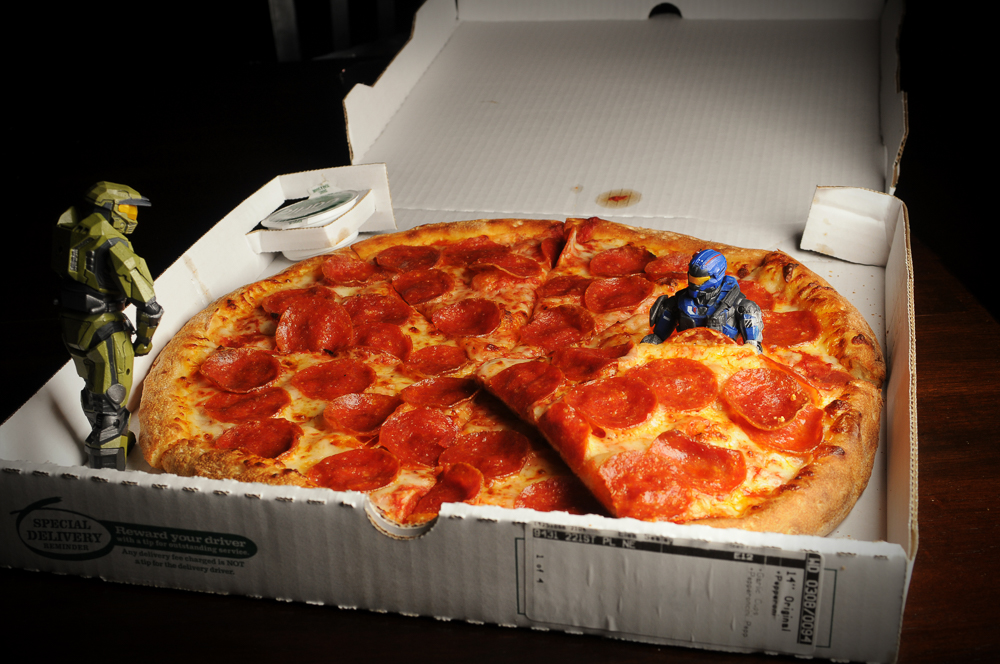Lisa went out this evening so I had to provide dinner. So we had pizza. I turned my back for five minutes and Carter and Master Chief got in there.