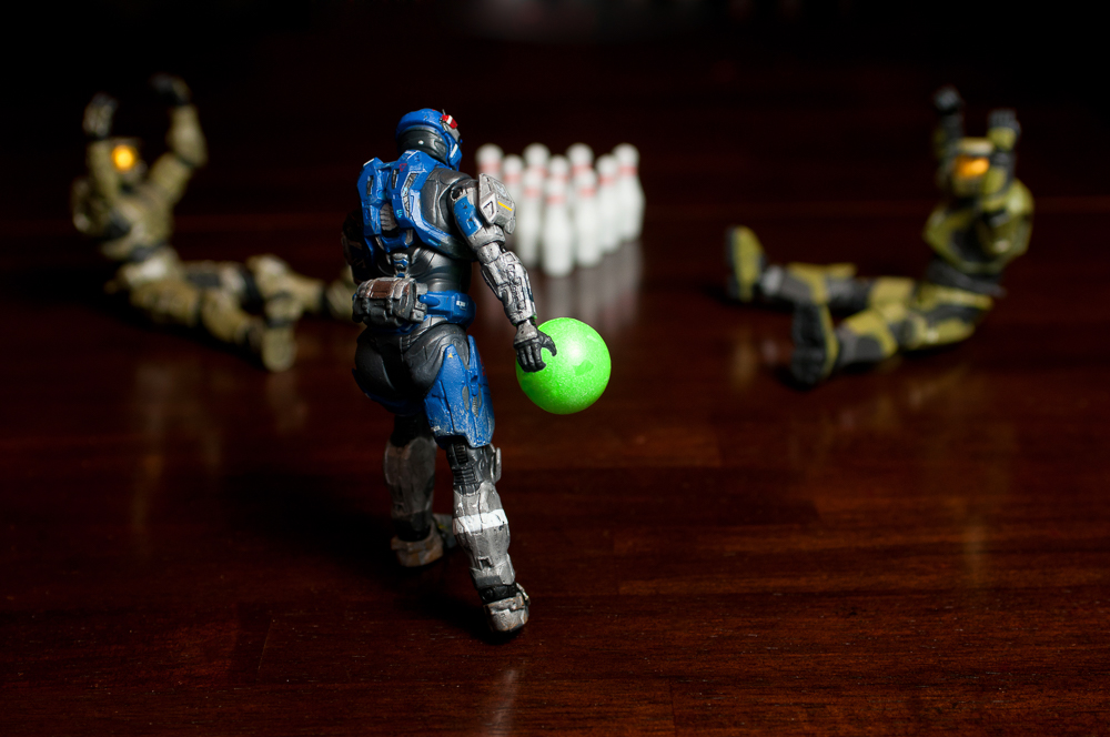 Tonight we find the Halo guys at a team event – they went bowling. Carter is demonstrating his amazing skills.