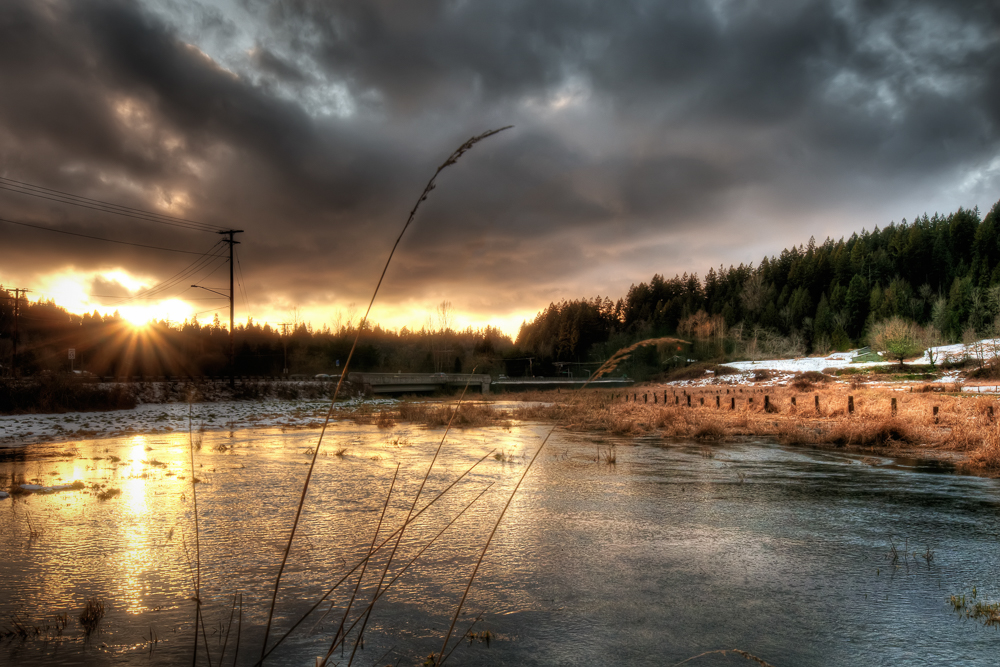 I was trying to figure out what to post tonight (didn’t get home from work until 8:30) and I found this image below. I took this one evening on the way home just after we had a bit of snow fall. I literally saw this pond by the side of the road, pulled over and got my camera out. I’ve been doing that a lot lately (and people look at me like I’m nuts).