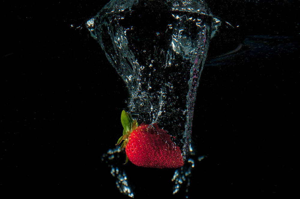 Horrible day today, snow at home and really heavy rain when I went into town. So I was wondering what should I photograph today. Then it hit me, I really felt like dropping a strawberry into a fish tank.