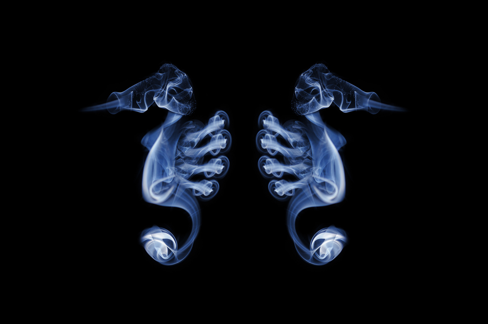 You then start taking pictures of the backlit incense smoke. When you have a few images you pull them all into photoshop and create a picture from lots of “interesting” shapes. You can really go wild and make anything you want. For my first attempt I thought I’d try a sea horse (the shapes I was pulling in helped).