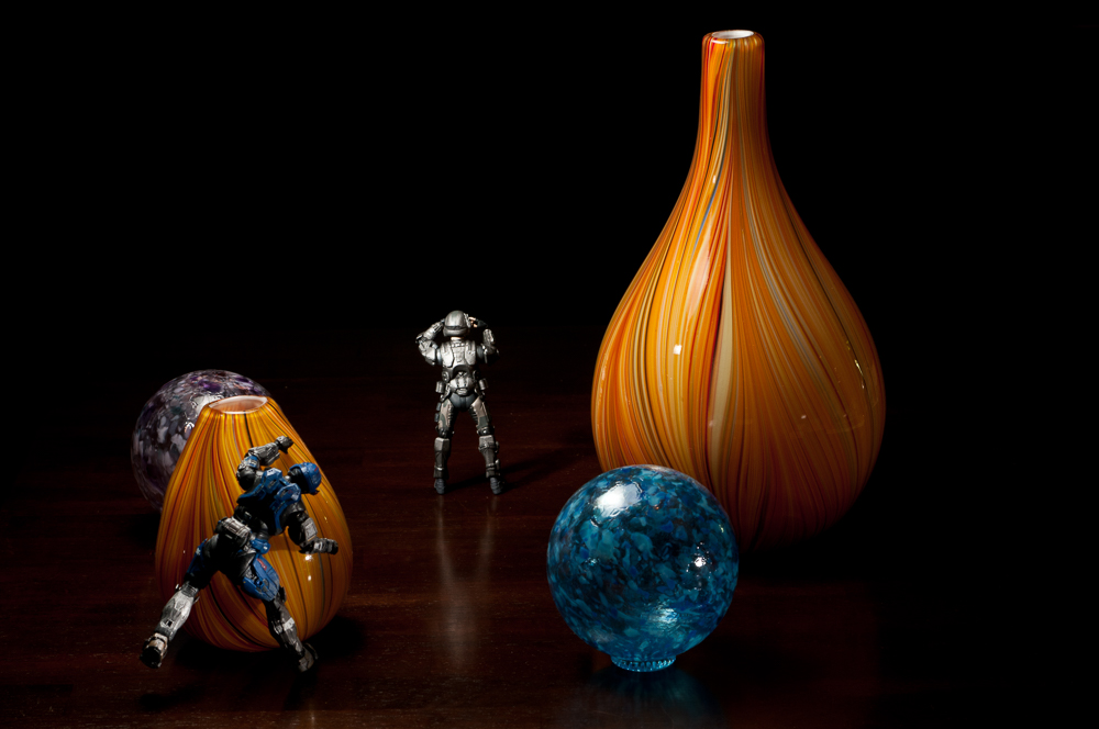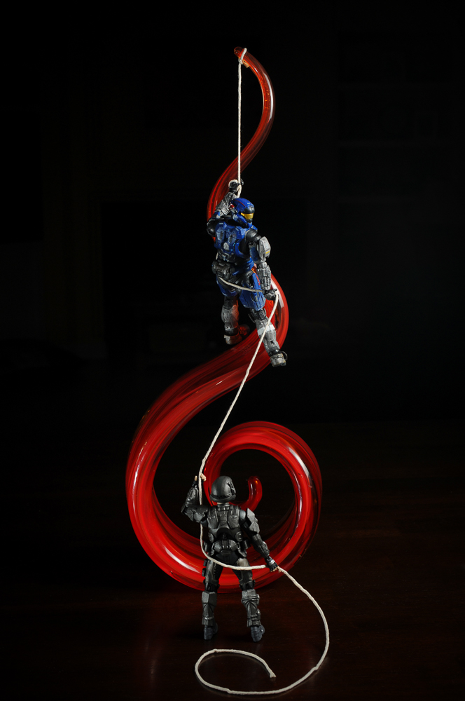 These Halo guys have no fear, they just throw a rope to the top of one of Lisa’s glass ornaments and started to climb!