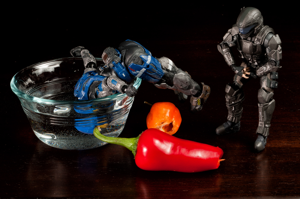 After my shoot the Halo guys found the peppers with terrible results! Apparently they are pretty hot!