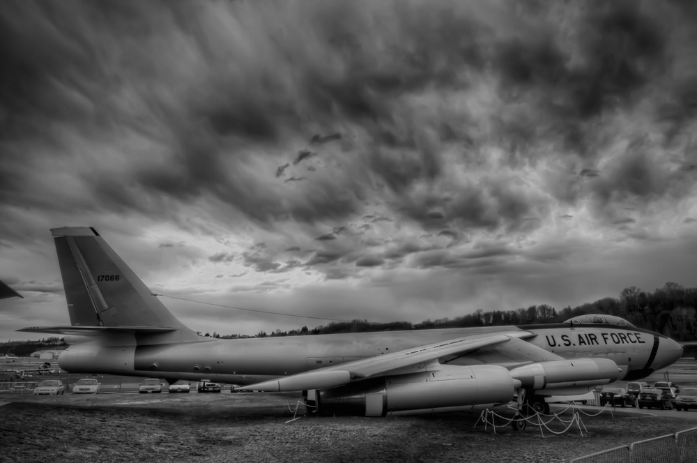 Right outside the museum was this Stratojet. While the plane looked pretty cool the sky above it was amazing. When I took the image I was thinking it would look pretty good in black and white, and as I haven’t posted a B&W picture yet, here you go.