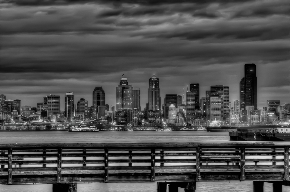 This shot was taken right by Salty’s and as there was a lot of traffic in Elliott Bay I had to wait for an opening to get the city. That said you can see the Ferry coming in from Bainbridge Island. As it was just getting dark the city lights are starting to come on and it adds a nice collection of lights to the image.