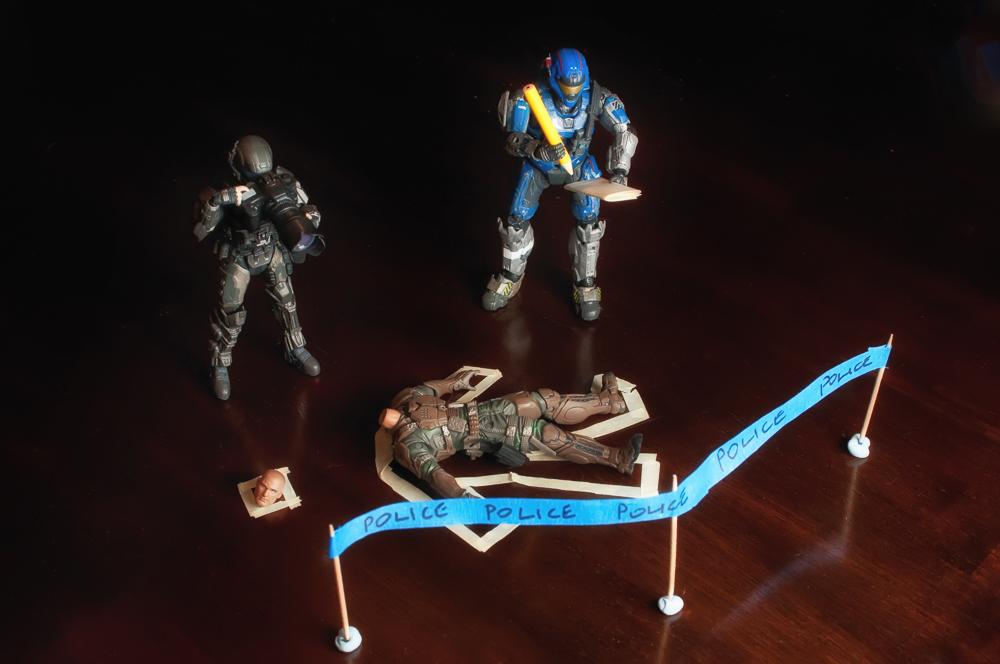 Tragically we had an accident at home and a Halo guy lost his head. The CSI division were immediately called in to investigate