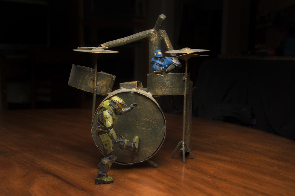 Tonight the guys found a drum kit to play with, but all Master Chief could do was kick the drum!