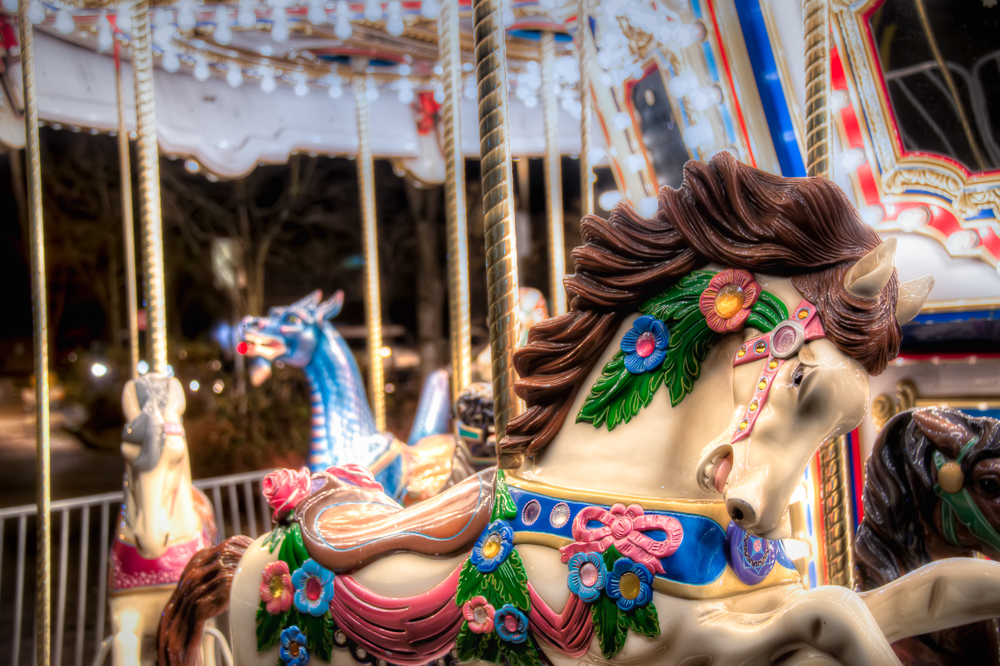 Before we started on the walking trail I stopped by the carousel to grab a picture. Obviously it was full of people when I got there so I waited until the carousel stopped and everyone got off and then got some shots. Of course as soon as everyone was off the carousel people started getting on again so I had to be quick. This shot was captured with a wide aperture so I had a narrow depth of field throwing everything in the background out of focus.