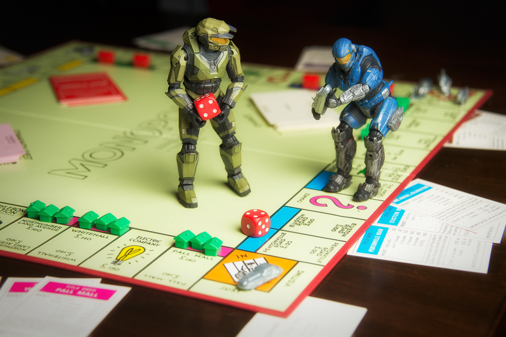 Tonight the guys decided to have a game of Monopoly. But Master Chief got suck in jail and was there for most of the game.