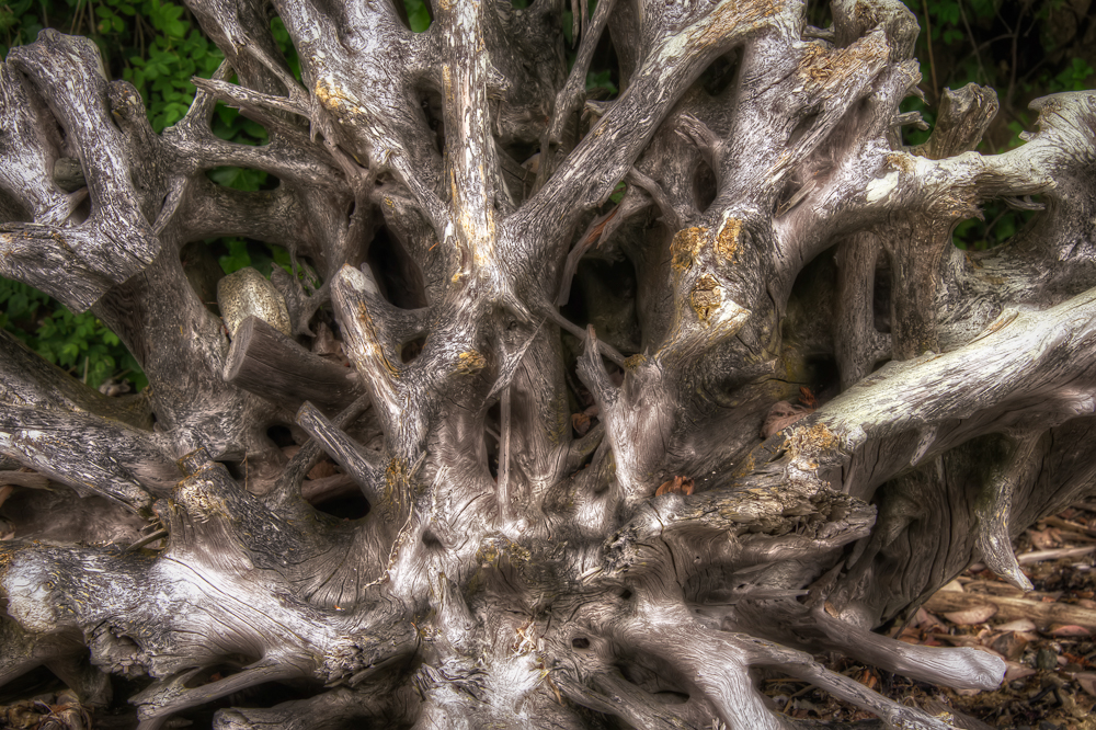 Anyhow, back to the picture. I was walking along a beach on Bainbridge Island and I came across a fallen tree. So what I hear you ask. Well the tree was rather uninteresting, but the roots at it’s base had turned almost silver and gold. I looked pretty amazing and I found myself staring at the said tree trunk for far too long (pretty sad eh?) Anyway I thought I’d take a picture as I really liked the way it looked and figured it might make a nice image.